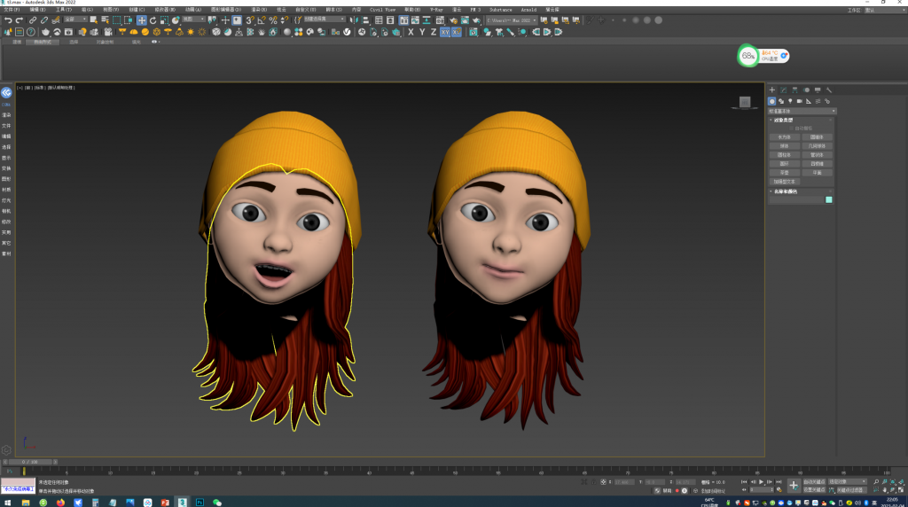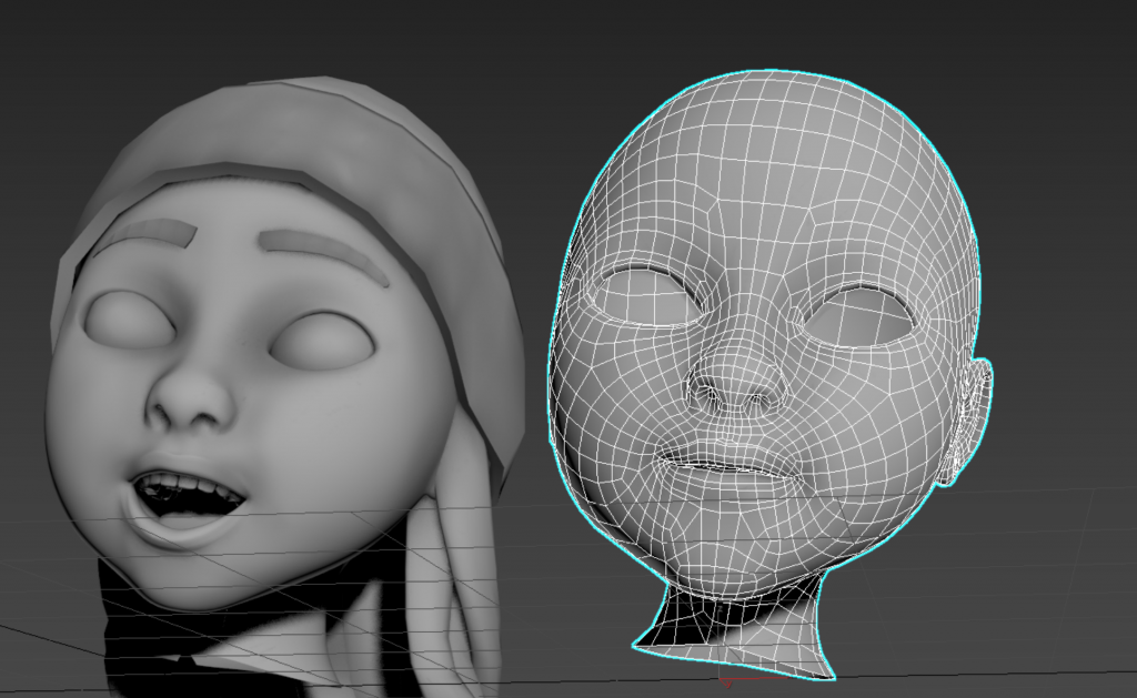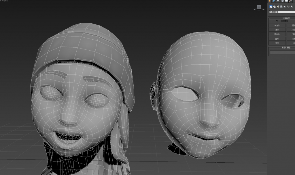 制作軟件:未平滑的頭模,脖子24條邊。脖子一級平滑后保持在24條邊,客戶在max中接上身體,頭發(fā)用素材示意一下就好,表情動(dòng)作正常建一個(gè),然后在正常的基礎(chǔ)上拉開嘴巴。