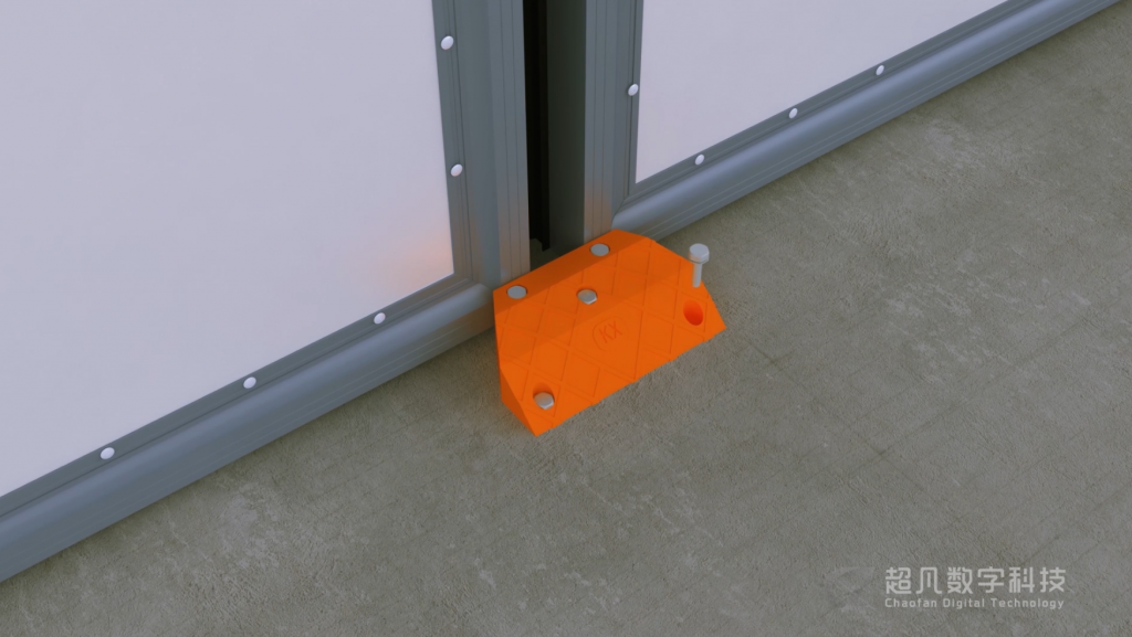 五:固定下導(dǎo)向輪,確保門(mén)體在運(yùn)行過(guò)程中下導(dǎo)向門(mén)邊始終包含導(dǎo)向輪做直線運(yùn)動(dòng)。