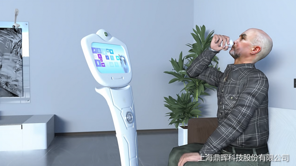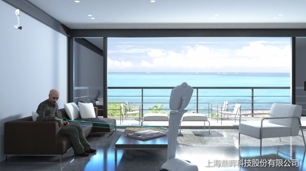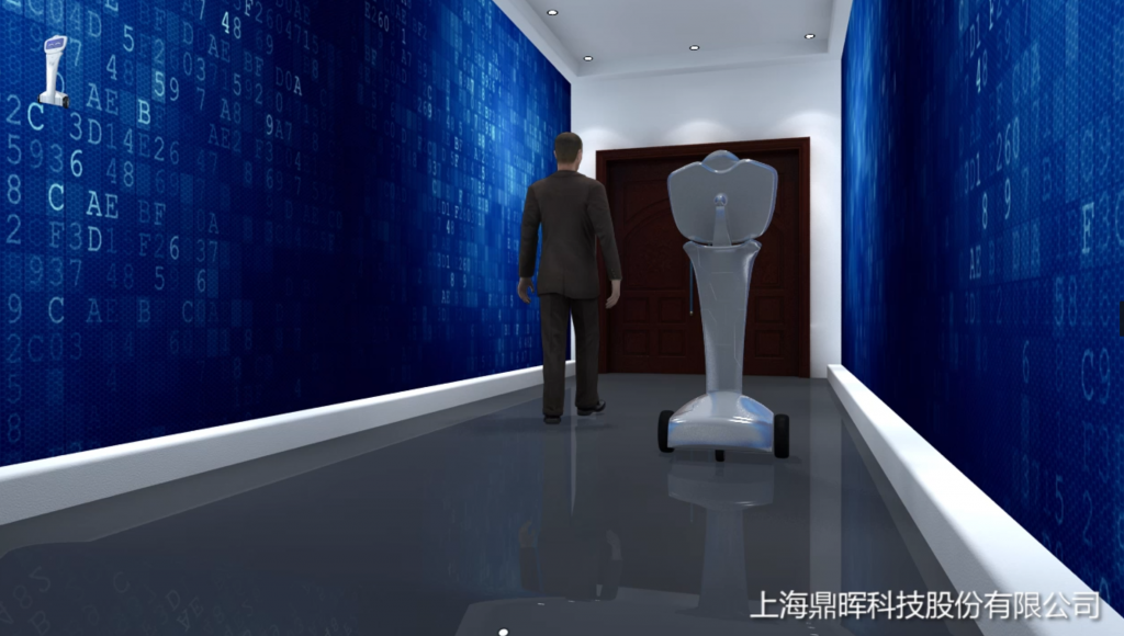 機(jī)器人(女聲)邊走邊說(shuō):您好,歡迎來(lái)到鼎暉科技。